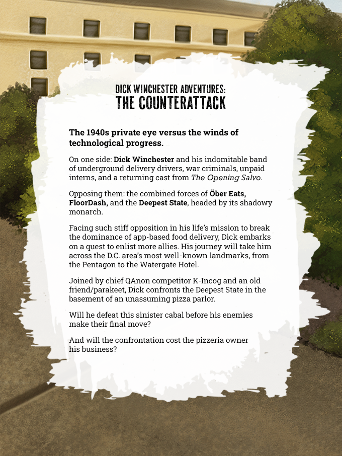 The Counterattack picks up where Book 1 leaves off, with the entirety of Arlington, Virginia bracing for the coming storm. Everyone knows it’s only a matter of time before long-simmering tensions between underdog Winchester Delivery Services and food delivery goliaths Öber Eats and FloorDash finally erupt into gang warfare.